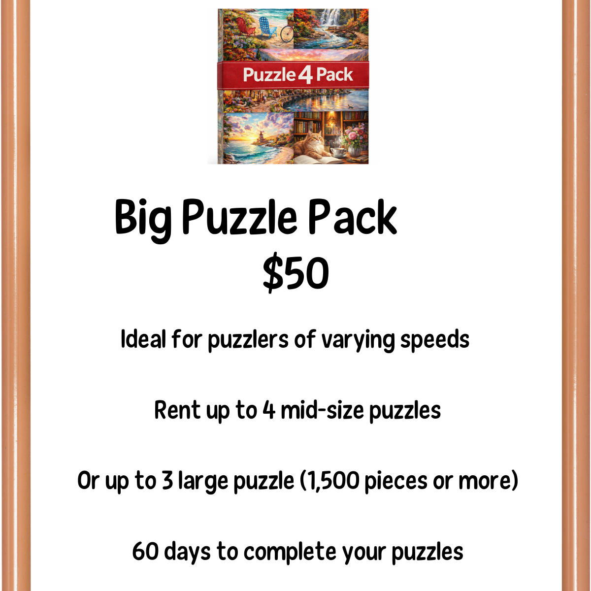 For puzzle lovers close to home—swap, share, and solve with a rotating collection right in your community. Fresh puzzles, zero hassle, and no shipping wait… just pick up and get puzzling.
